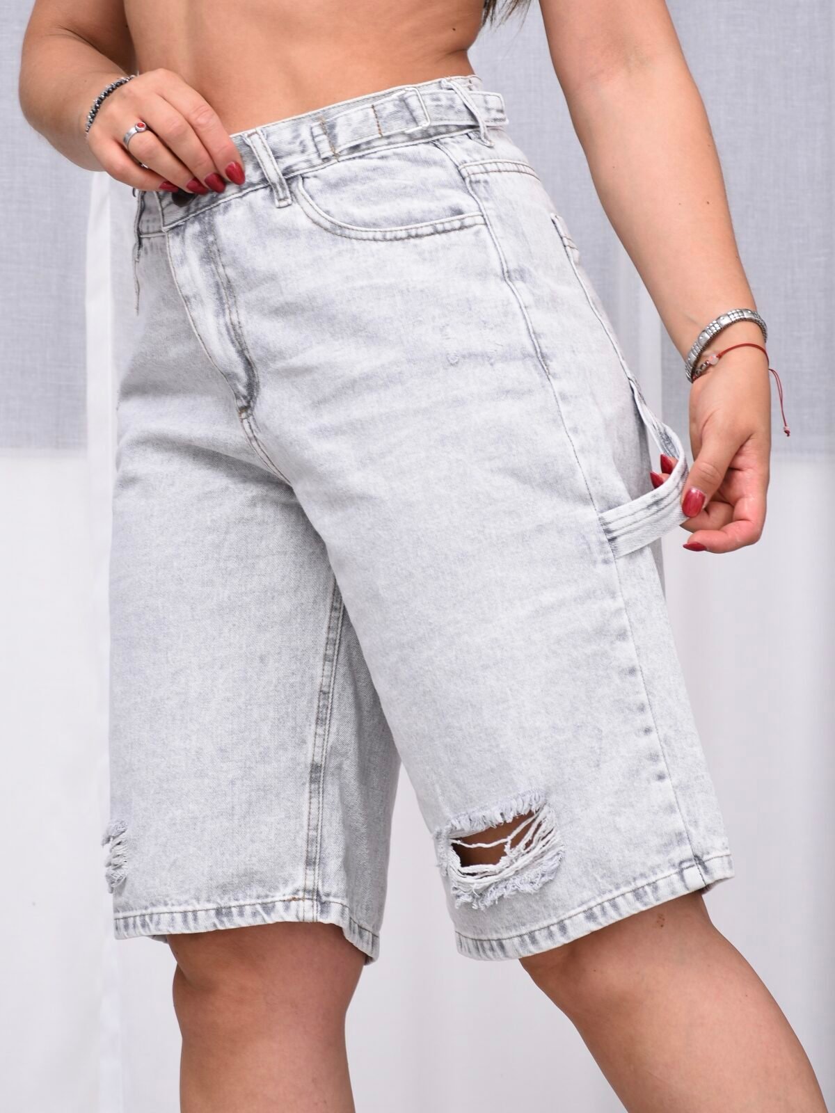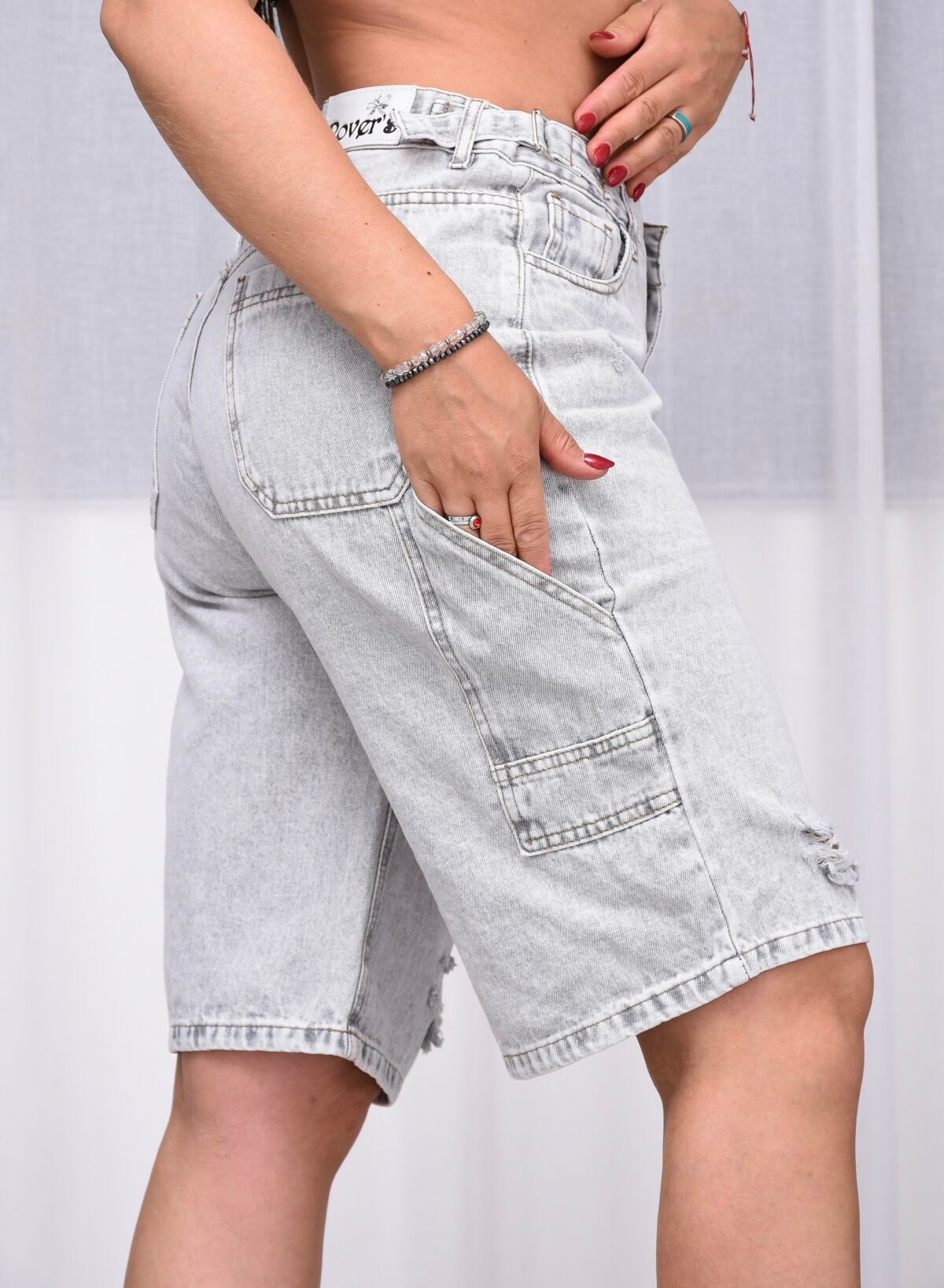 Bermuda Baggy Rígido Grey Carpintero Con Cintura Reguladora
