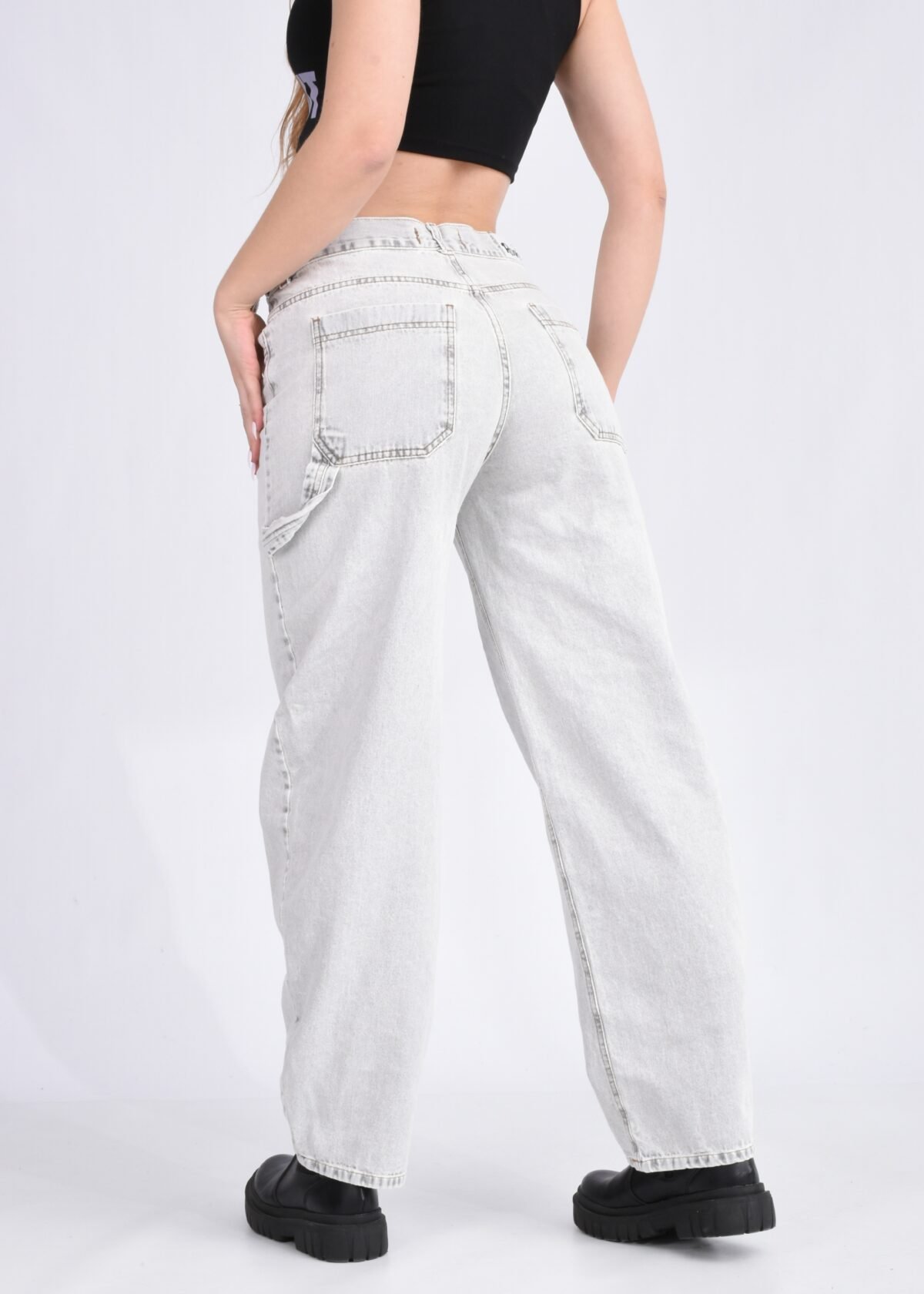 Corte: Pierna ancha y holgada en la cadera, con caída recta. Presenta un estilo tipo carpenter (con presilla lateral). | Tiro: Alto.