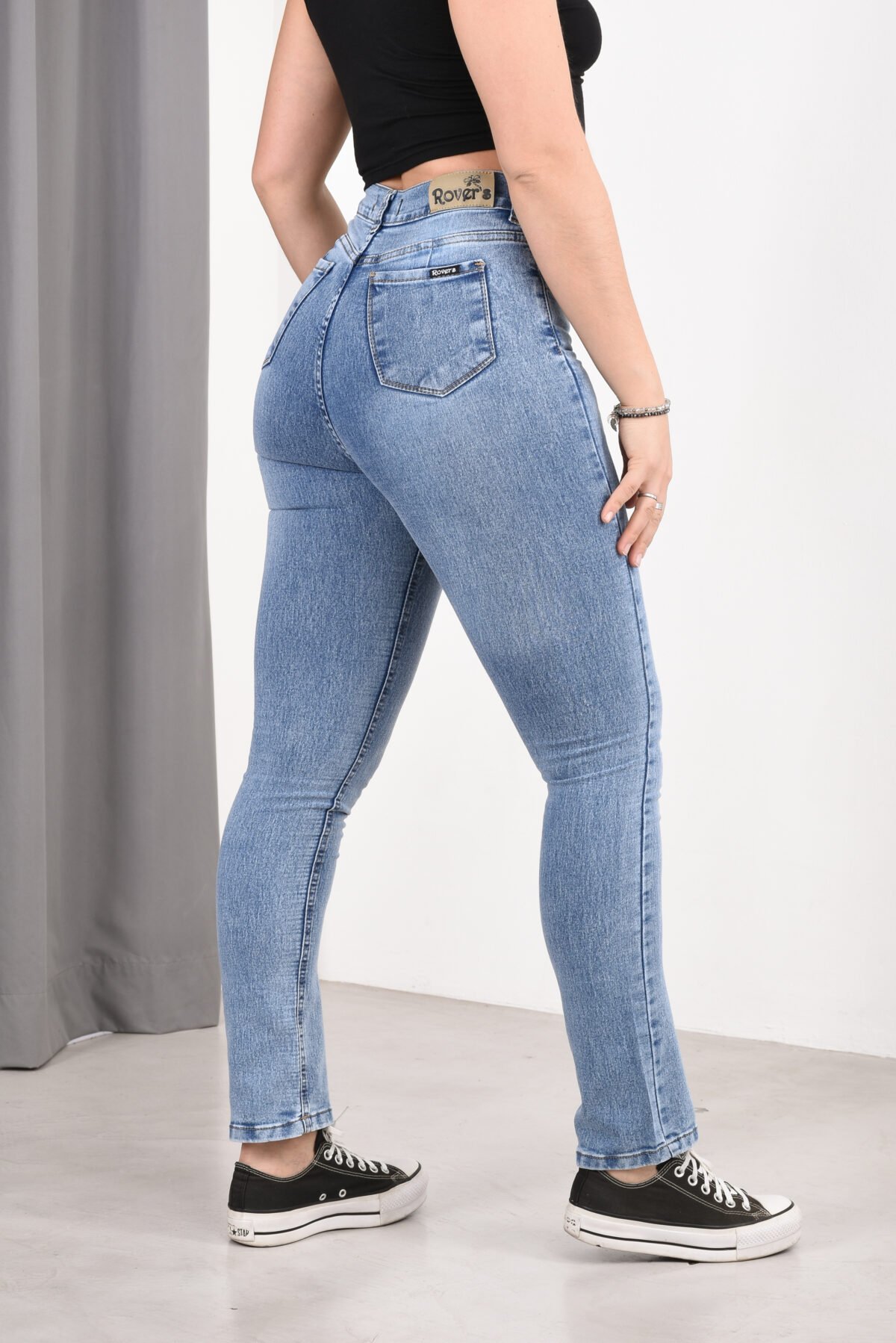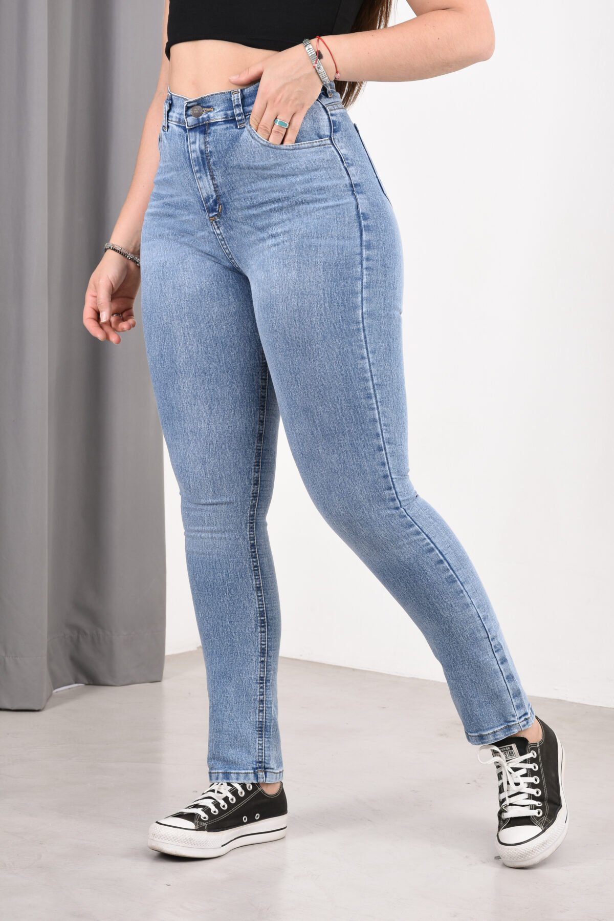 Corte: Silueta Skinny, con un calce totalmente entallado que se ajusta a la forma de las piernas desde la cadera hasta el tobillo. Presenta un diseño clásico de cinco bolsillos con costuras reforzadas en contraste sutil. | Tiro: Alto.