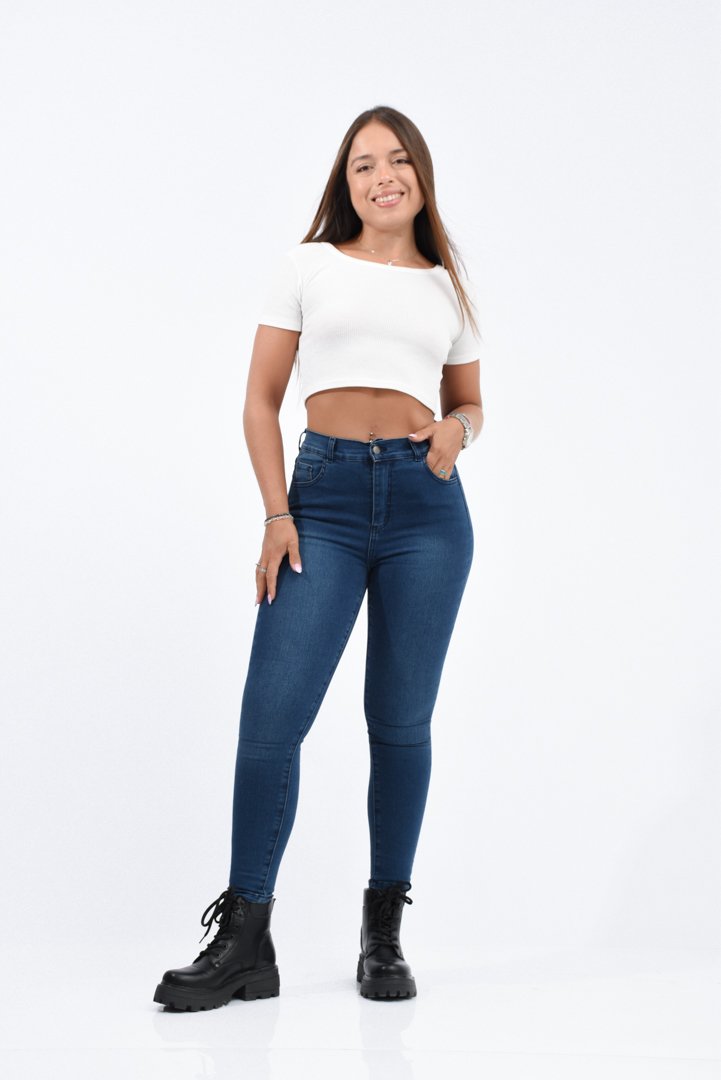 Corte: Silueta Skinny, con un calce totalmente entallado que se ajusta a la forma de las piernas desde la cadera hasta el tobillo. Presenta un diseño clásico de cinco bolsillos con costuras reforzadas al tono. | Tiro: Alto.