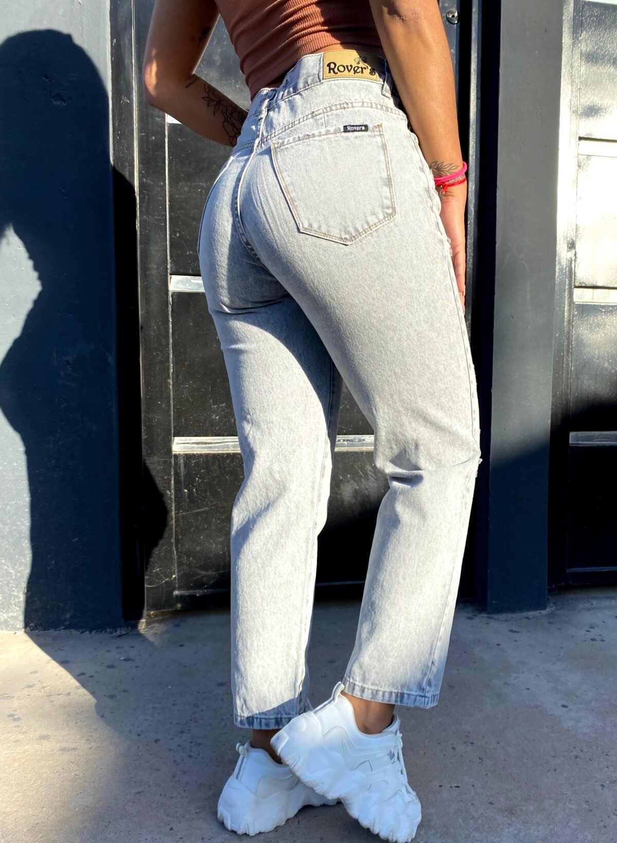 JEAN MOM RIGIDO GREY CON ROTURAS LASER.