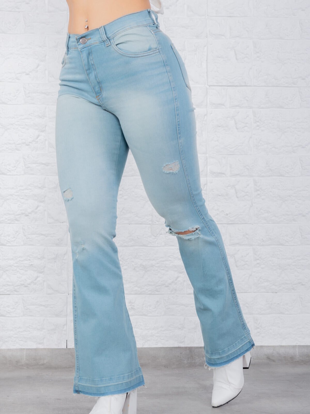 JEAN OXFORD RE-ELASTIZADO CELESTE OXIDO CON ROTURAS LASER