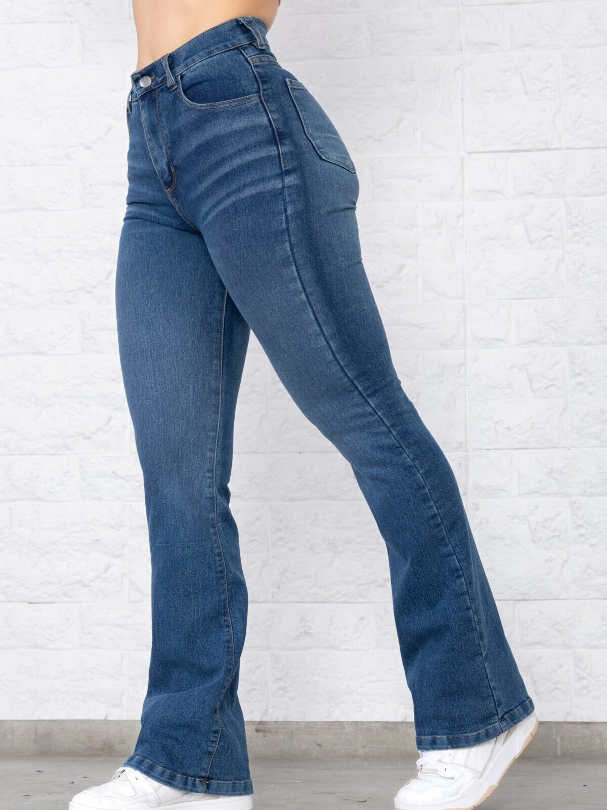 Corte: Silueta Oxford (o Flare), con un calce entallado en la cadera y los muslos que se ensancha gradualmente hacia el ruedo para una silueta clásica y estilizada. Presenta un diseño limpio con bigotes marcados (efecto de aclarado por uso) en la zona de la cadera, que aportan relieve visual. Incluye el clásico sistema de cinco bolsillos y costuras reforzadas al tono. | Tiro: Alto.