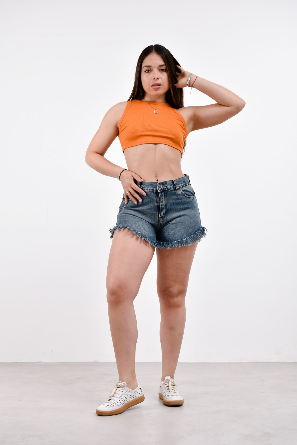 Detalles: Diseño clásico de cinco bolsillos, presillas para cinturón. El detalle principal es el ruedo con flecos llamativos y uniformes. Cierre de cremallera con botón metálico.